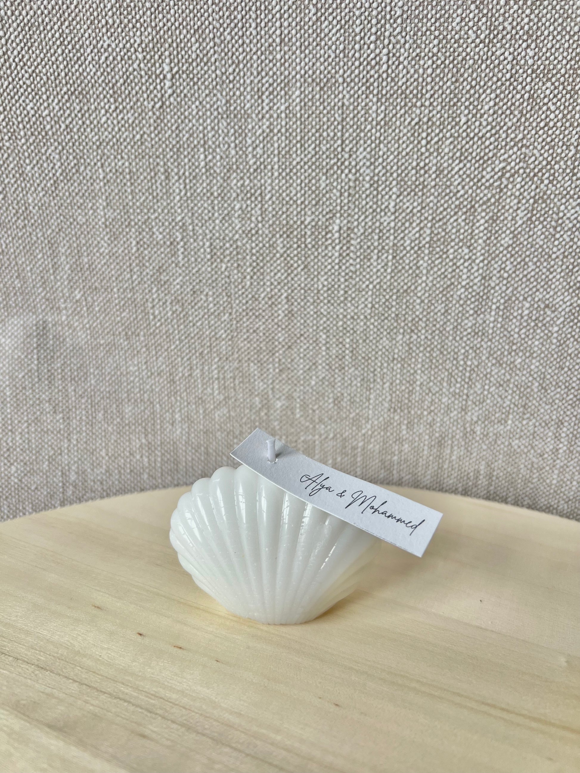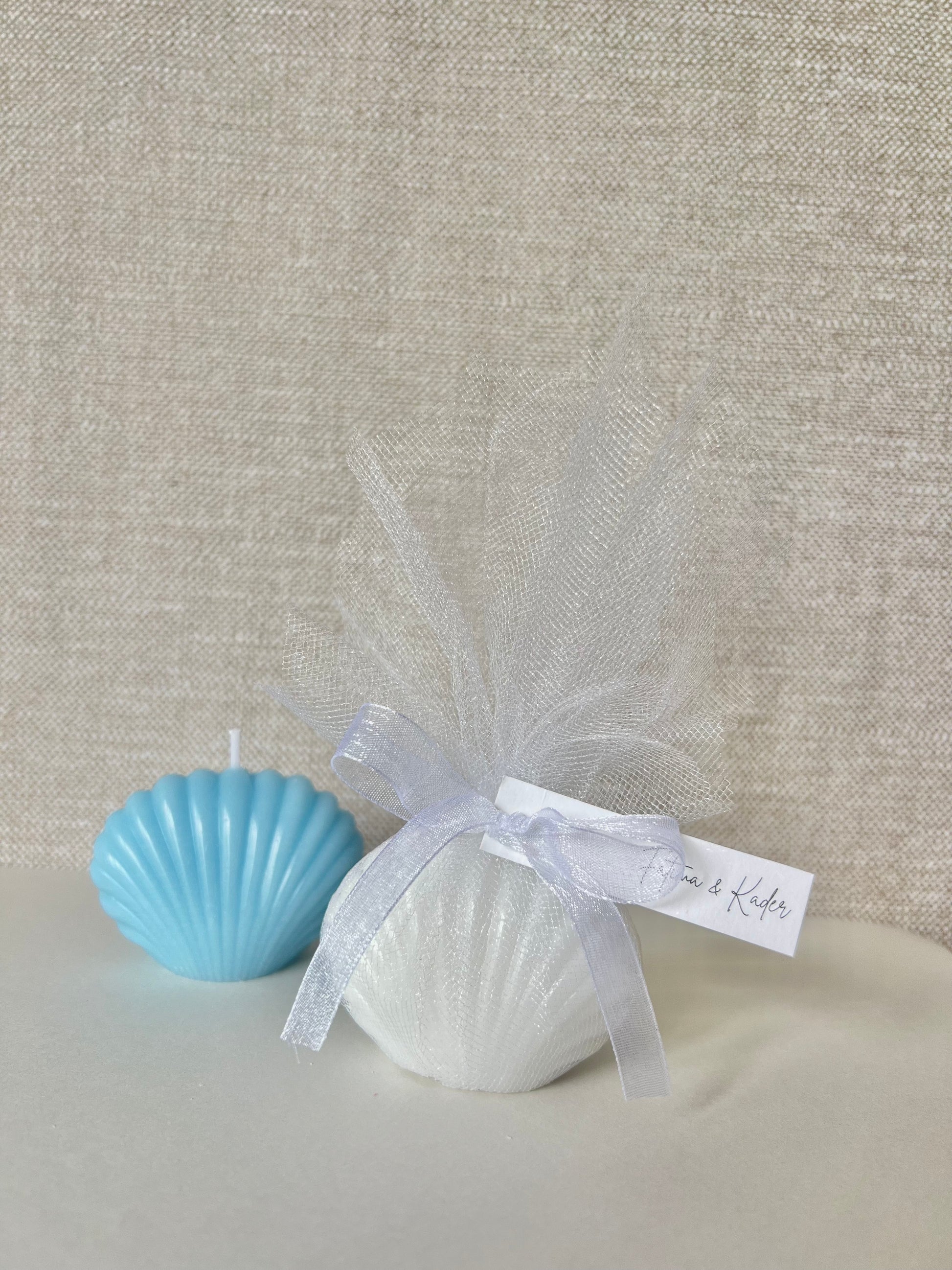 Découvrez nos Bougies coquillages, un cadeau raffiné et élégant, parfait pour les mariages, fiançailles et cérémonies de henné. Chaque bougie est sublimée par une étiquette personnalisée, apportant une touche unique et mémorable à votre événement.