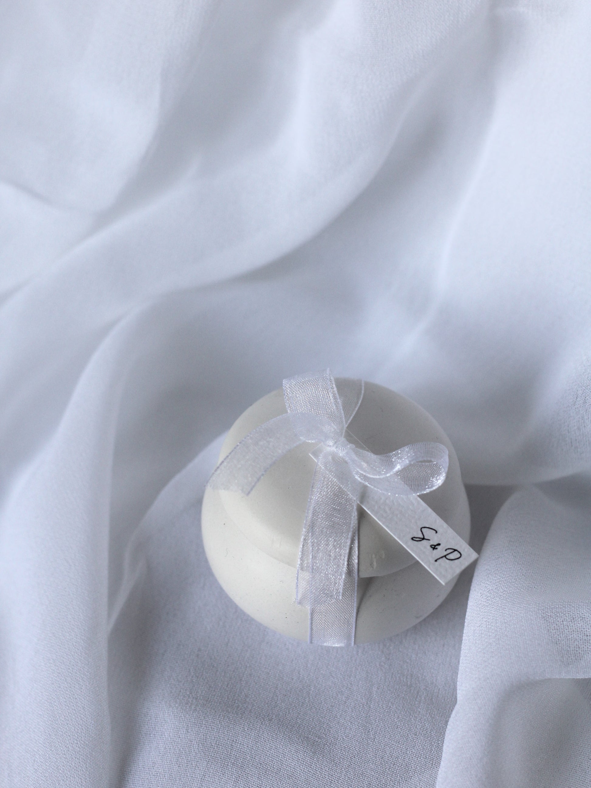 • Une étiquette personnalisée, un photophore coulé à la main & un ruban au choix