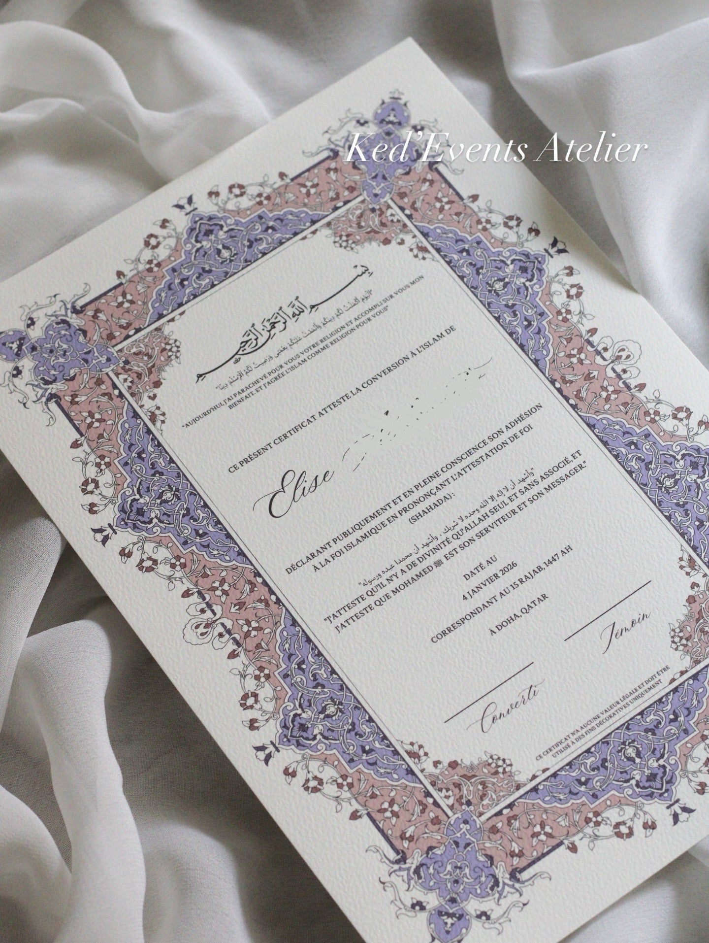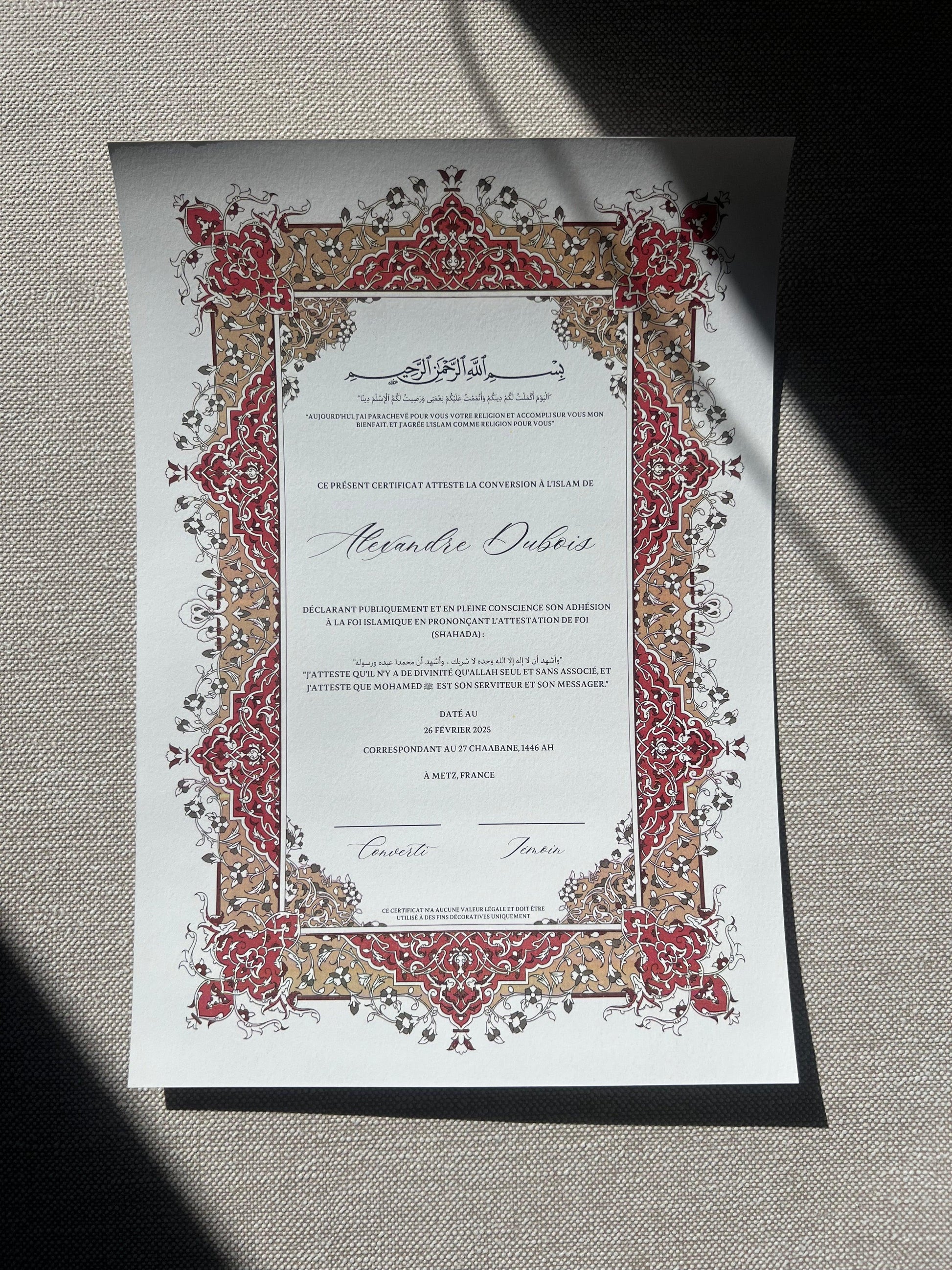 Certificat de conversion islamique "SAMAH"