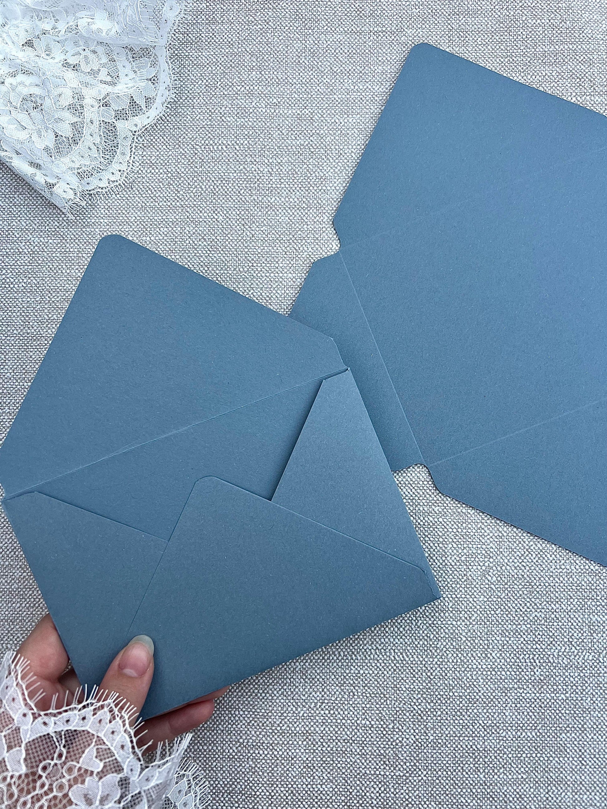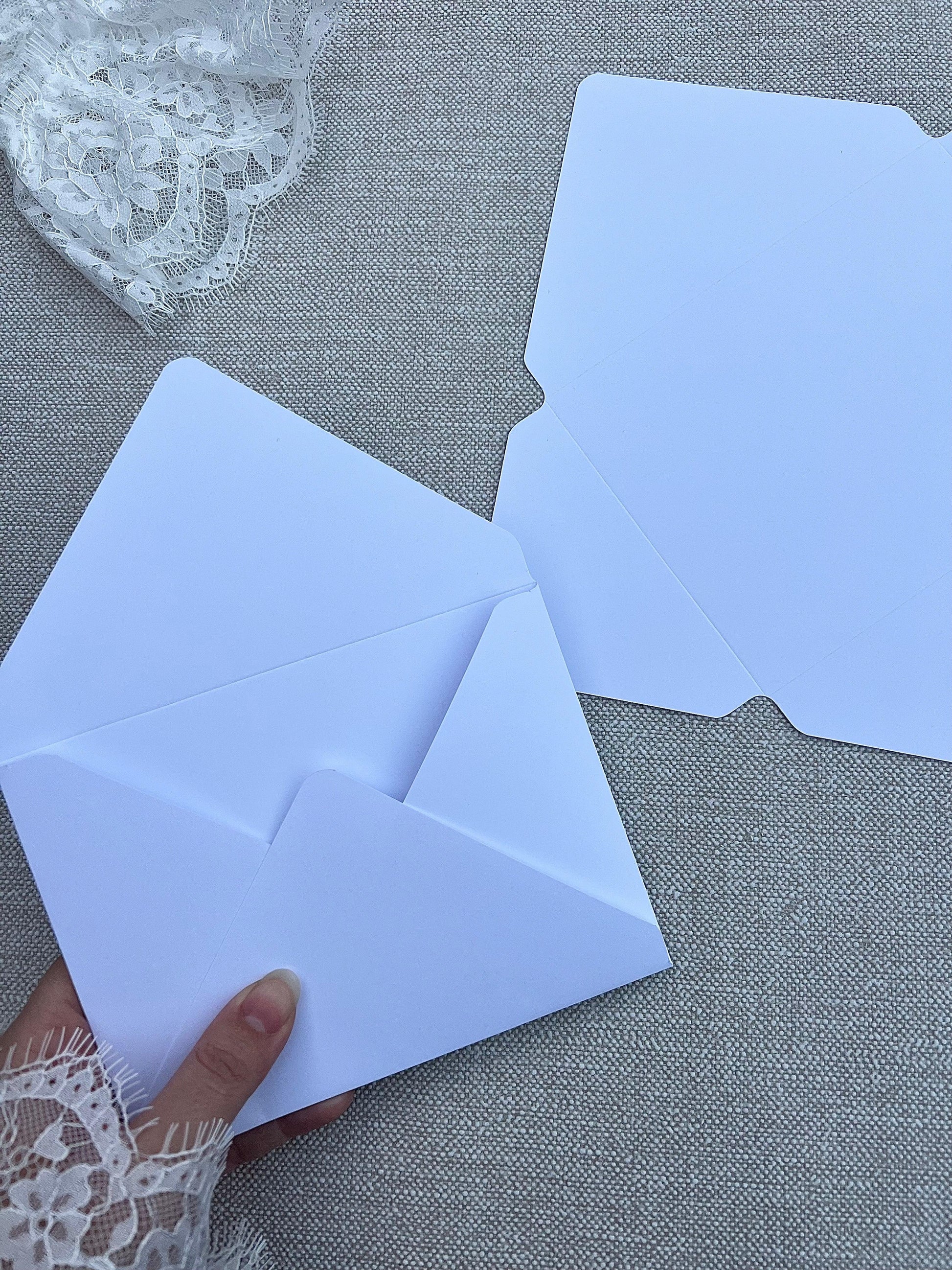 Découvrez nos enveloppes faites à la main, disponibles en plusieurs coloris et finitions pour sublimer vos invitations et courriers. Un détail raffiné pour une touche d’élégance unique.