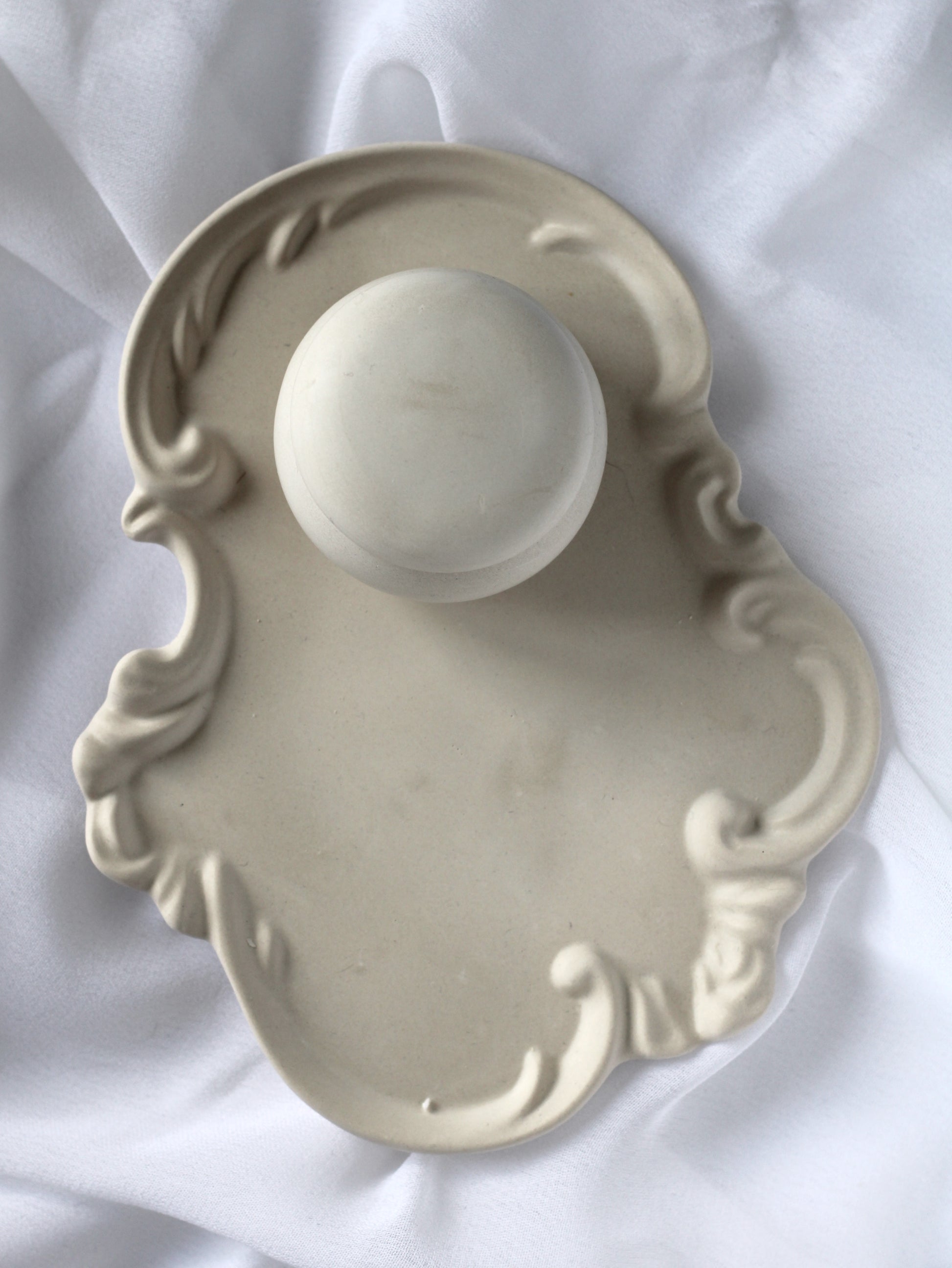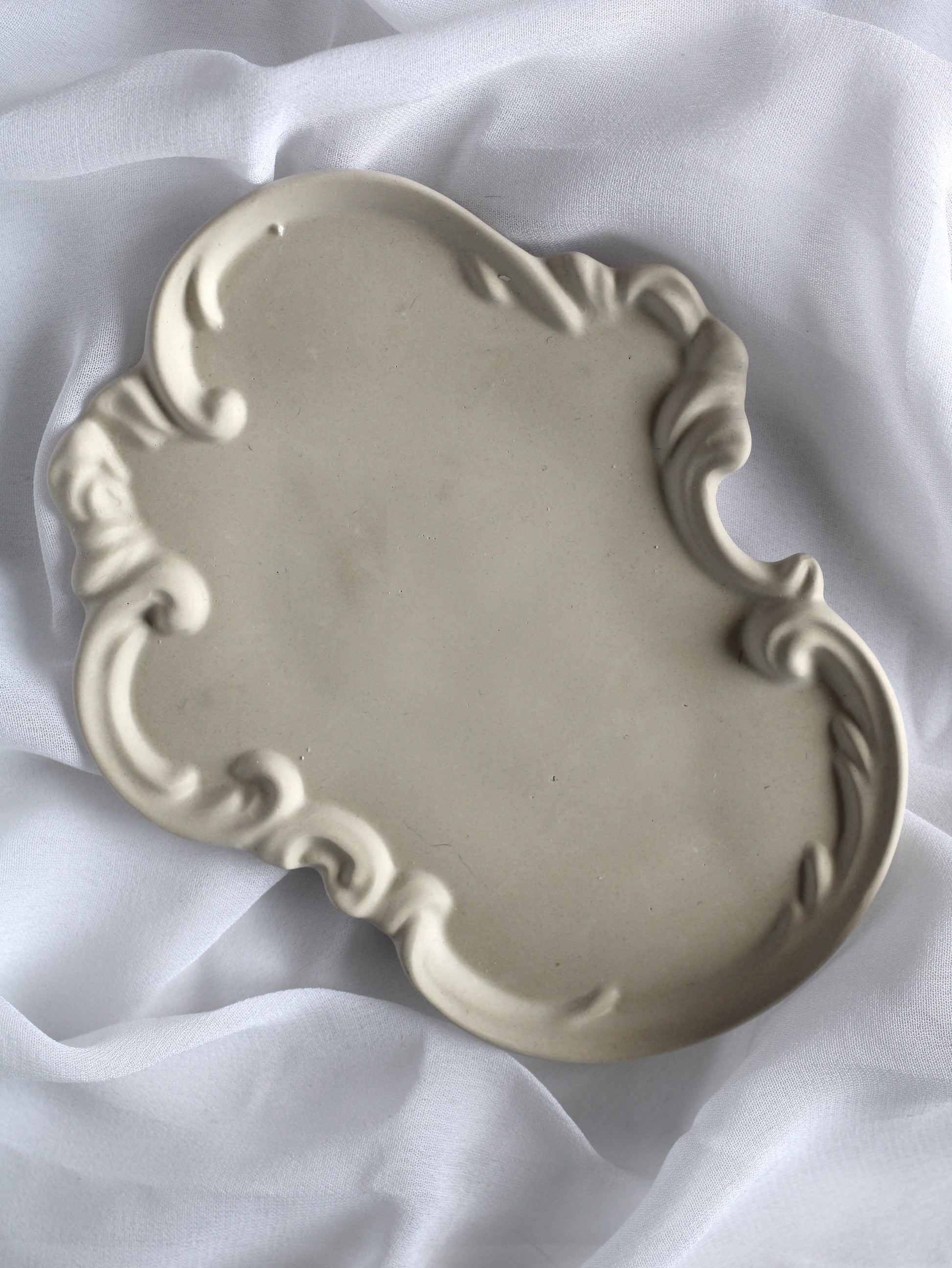 • 1 plateau et un pot "Elégance" en plâtre céramique réalisé à la main - coloris BEIGE (20x18cm env.)